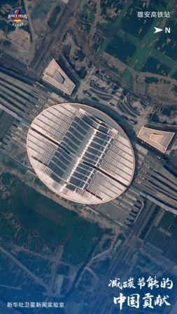2020年底建成投用的京雄城際鐵路雄安站,建筑面積47.52萬平方米,巨大的橢圓形屋頂則是一座光伏電站,鋪設(shè)了4.2萬平方米光伏建材,年均發(fā)電量可達(dá)580萬千瓦時。